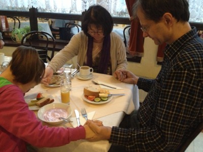 朝食係りのお姉さん、髪型ばっちり決まってます(^_−)−☆