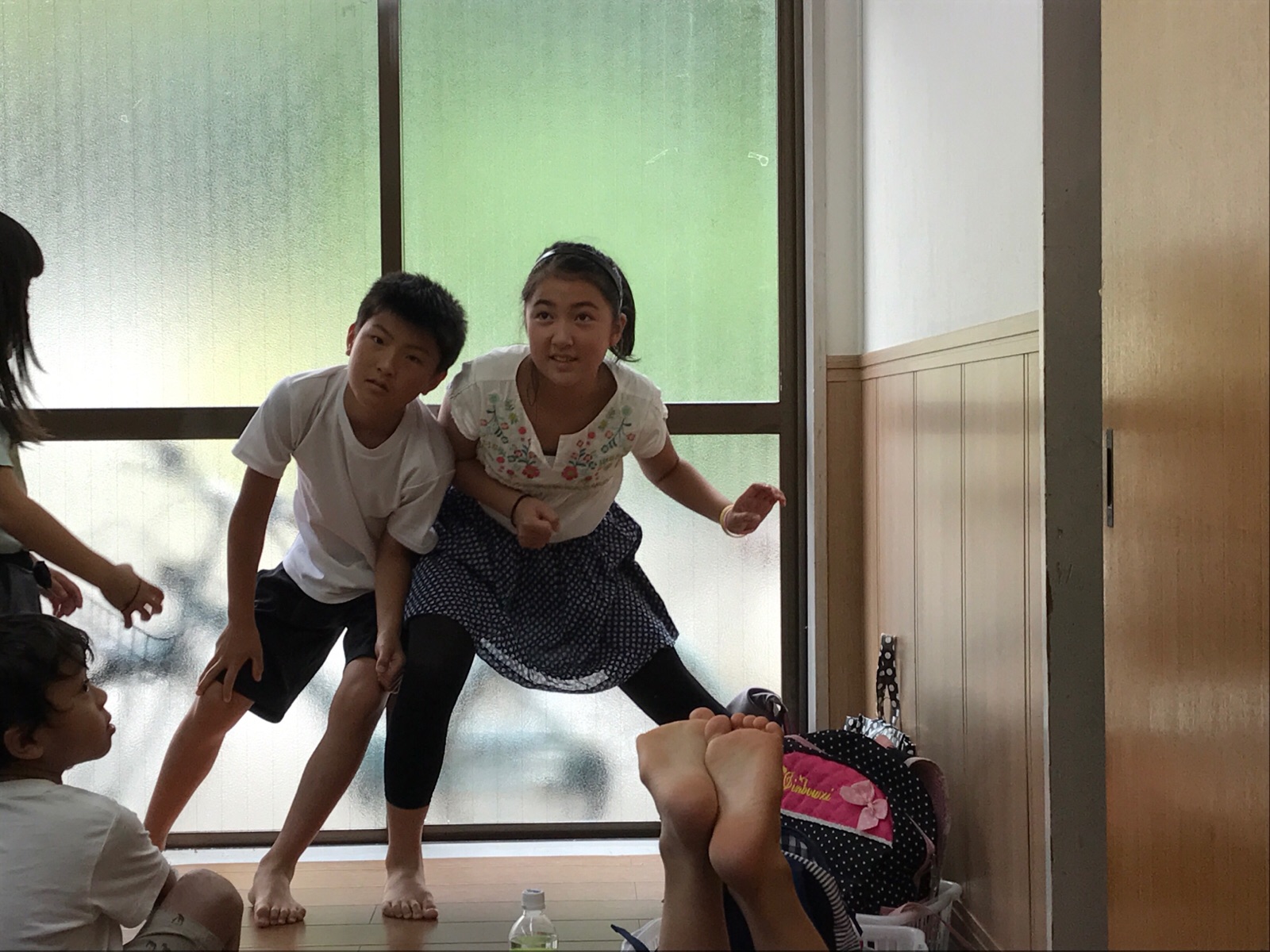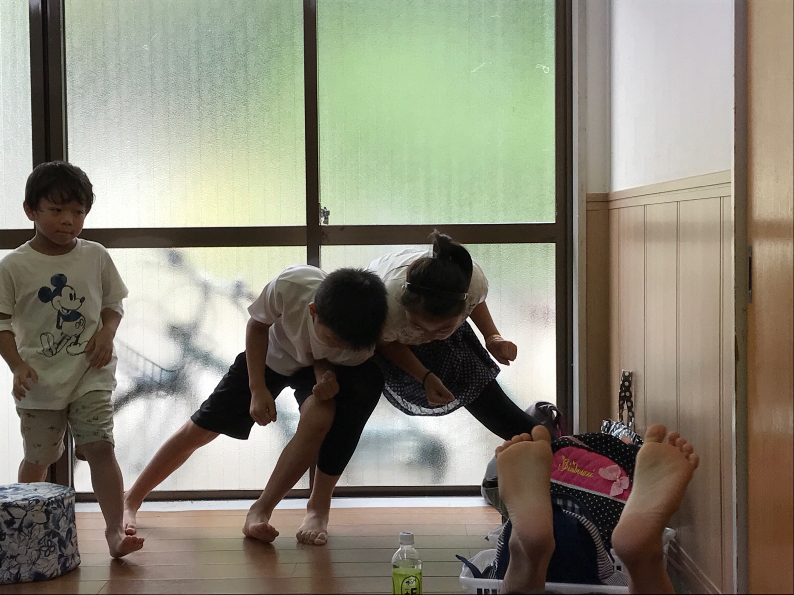 おしくらまんじゅう⁇していた2人^ – ^と、 手前の足の裏は誰でしょぅか⁇^ – ^ (わかりません。。)