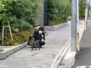 ネコちゃんと、たわむれる、クロちゃんを、遠くから見つけました。
