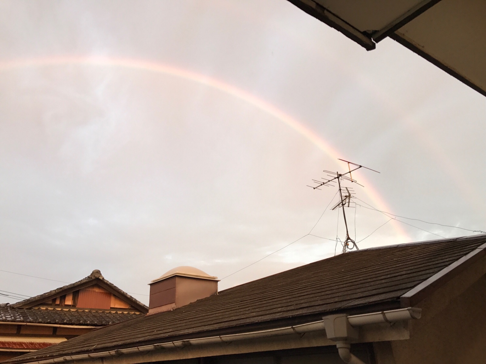 今日の夕方2重の大きな虹が出ました。 味わいながら写真を見ています! たかはし