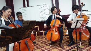 2016年 冬の白馬キャンプでの、オ━ケストラセミナ━の時の、練習風景。 チェロの はじめ君と真君。 楽しそうに、楽器を奏でていました! Megumi