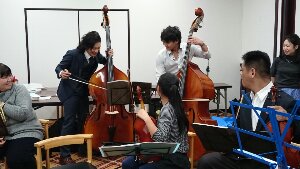 コントラバスのお二人! 2016 冬の白馬キャンプの、オ━ケストラセミナ━でのひとコマ☆ Megumi