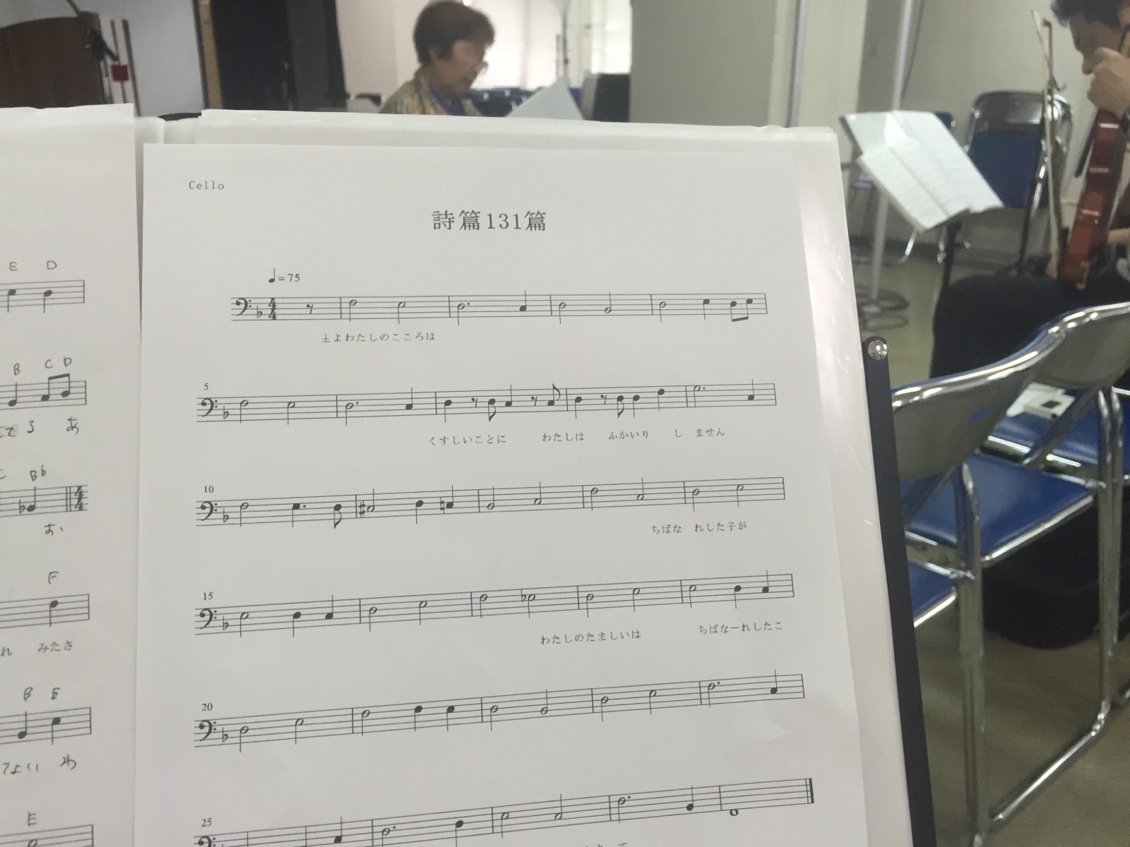 今日は新しいスコア詩篇131の練習をしています。 Yui