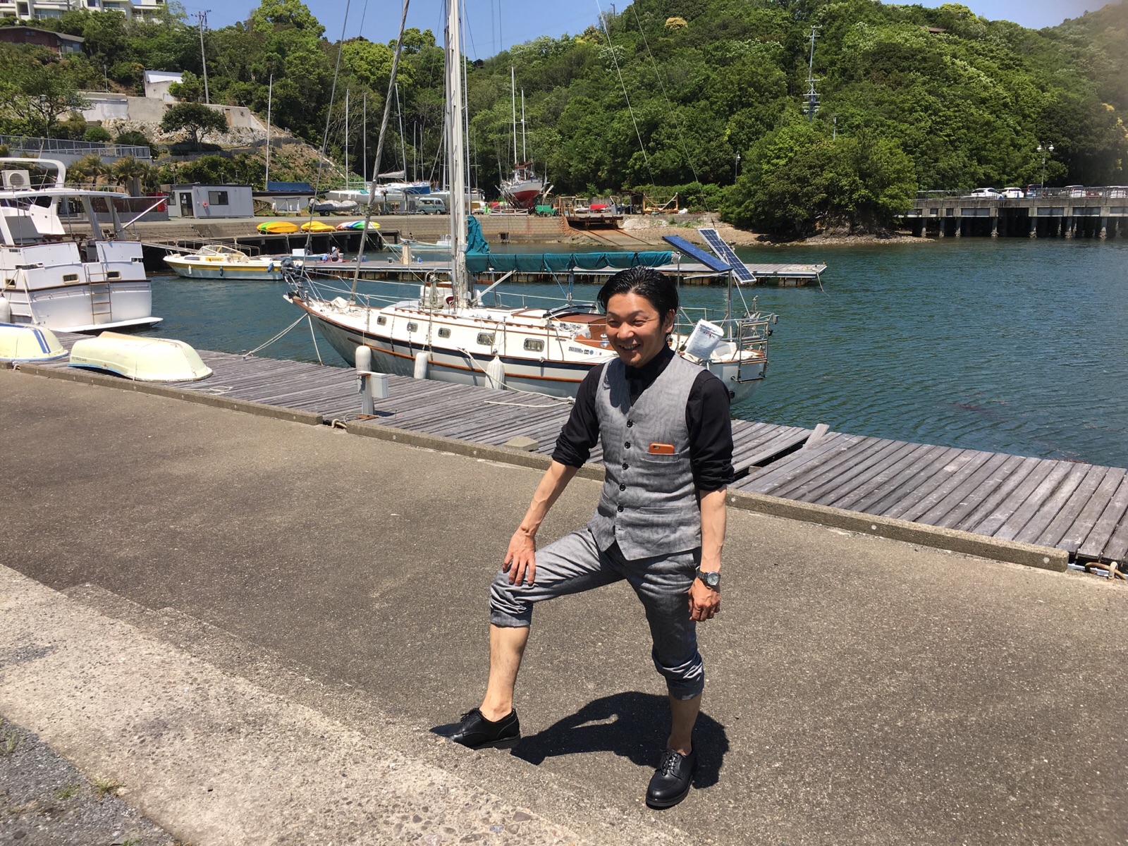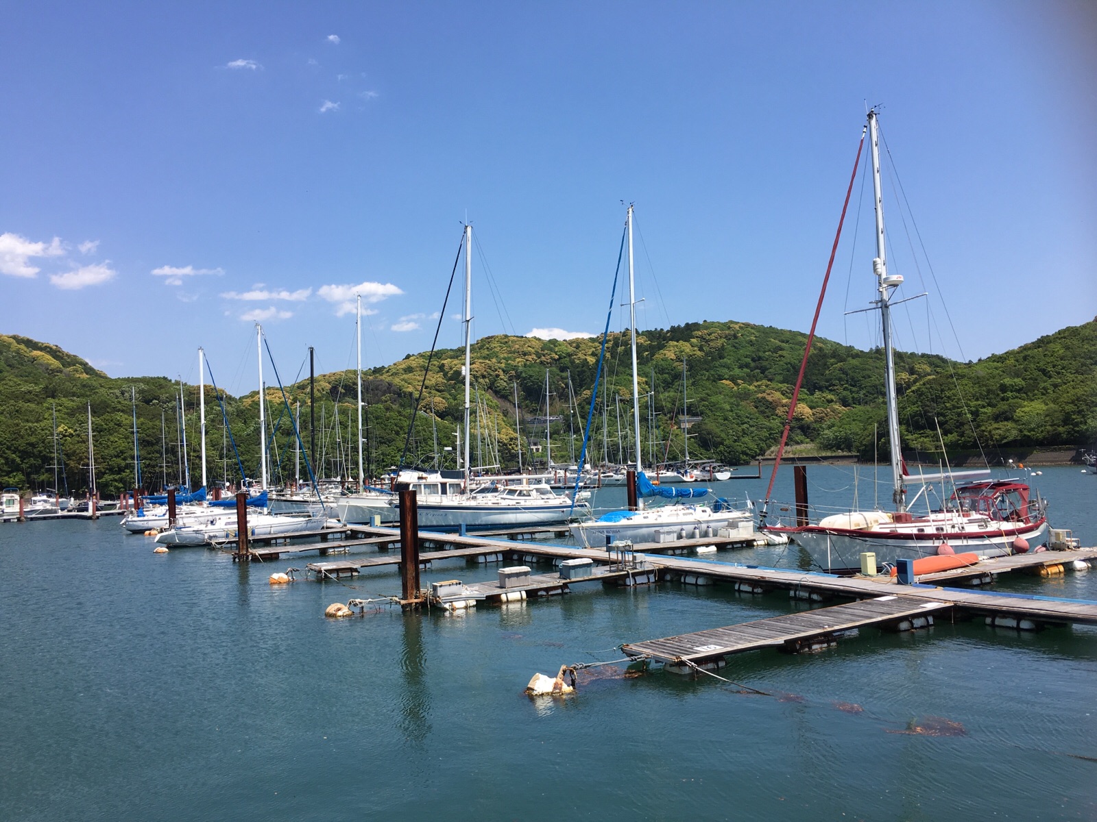 渋滞無く、早く着いたので、ヨットハーバーにも立ち寄りました〜!綺麗な風景〜!おっ、石原裕次郎さん?