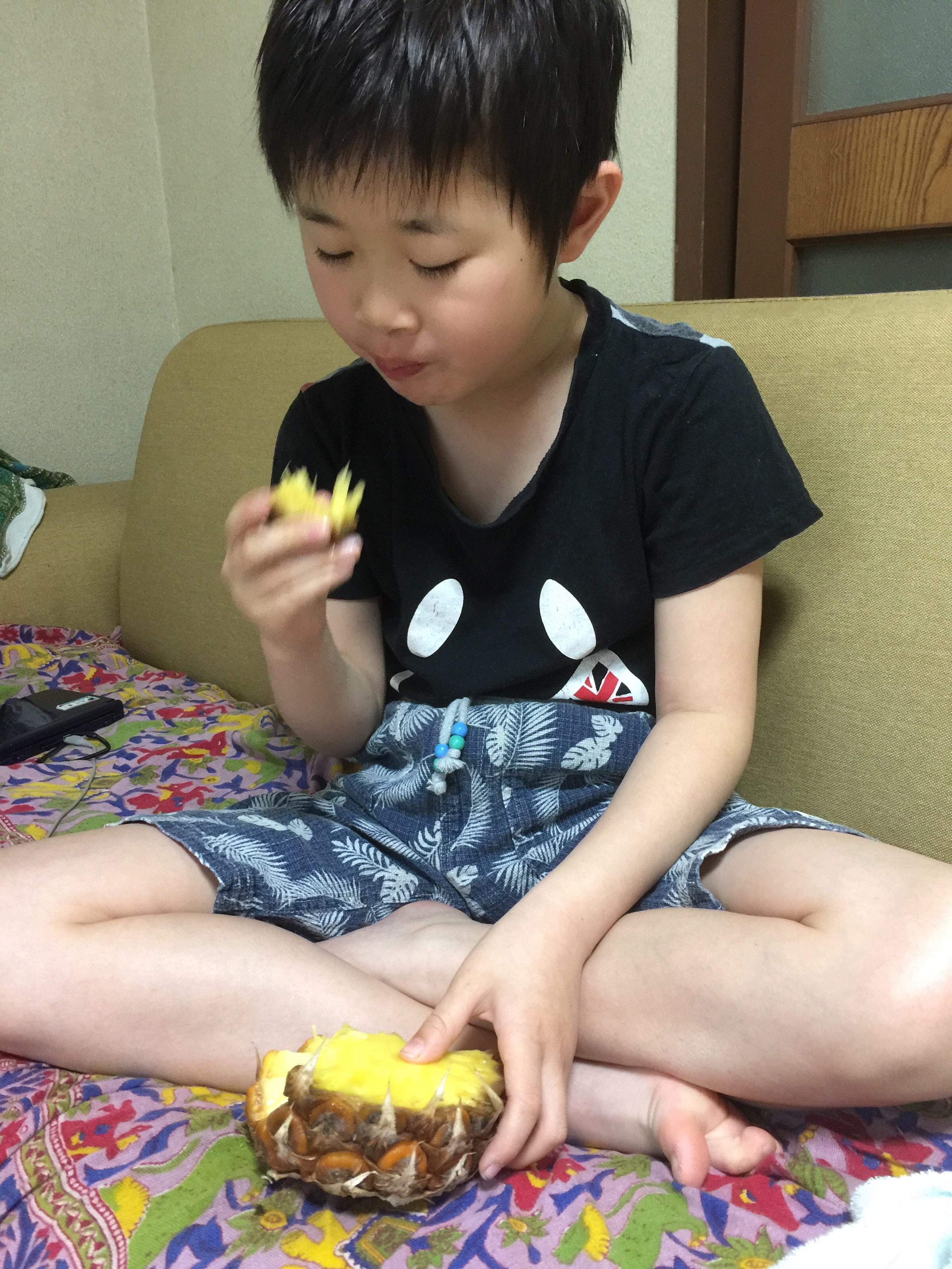 昨日は雲虹でお仕事。永藤さんが沖縄からスナックパインを買ってきてくれました。優斗が帰ってくるから先に帰ろうとしたら、優斗君にとお土産をくださいました。