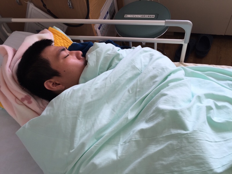 肺膿瘍(はいのうよう)で、入院しました。肺の中で膿が溜まり 今は、抗生剤の点滴治療中です。 朝食は食べましたが昼食は 食べれなくて寝ています。 まだ熱が高いね。 静岡教会 ケイコ