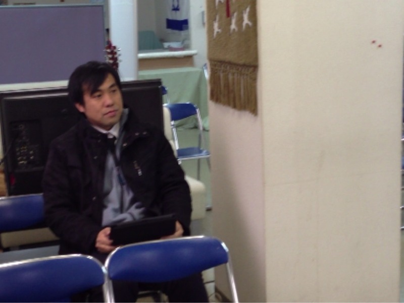 毎週日曜日、iPad肌身離さずの藤田伝道師。明日からのチームにも持っていくのでしょうか?