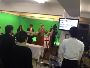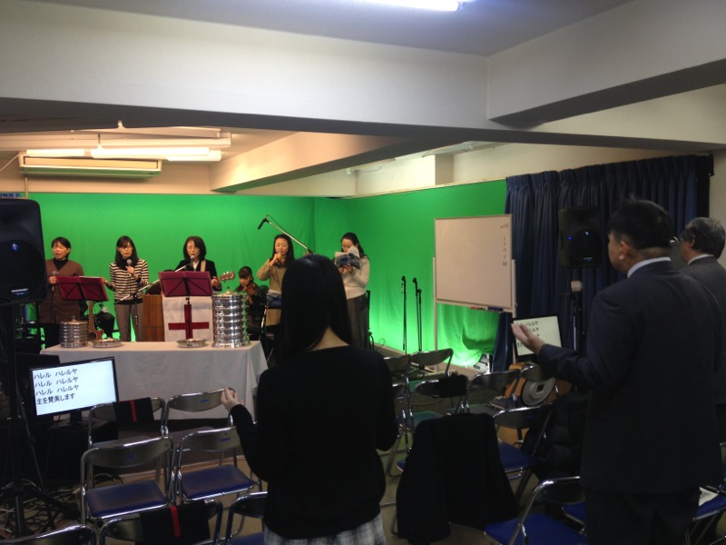 全員で賛美をしてます。