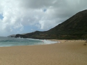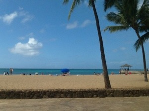 ワイキキビーチを通過中! きれいな砂浜と海です。