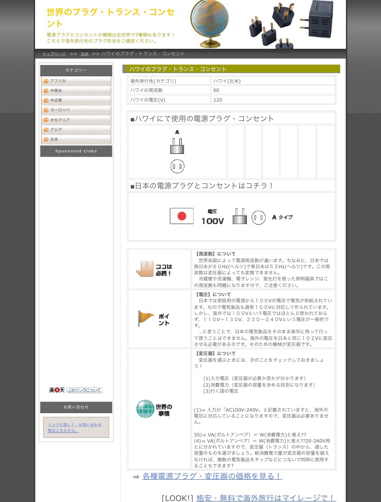 以前、ウガンダにチームで行った時も、このサイトに助けられました。 世界のプラグが一目で分かります。masukawa