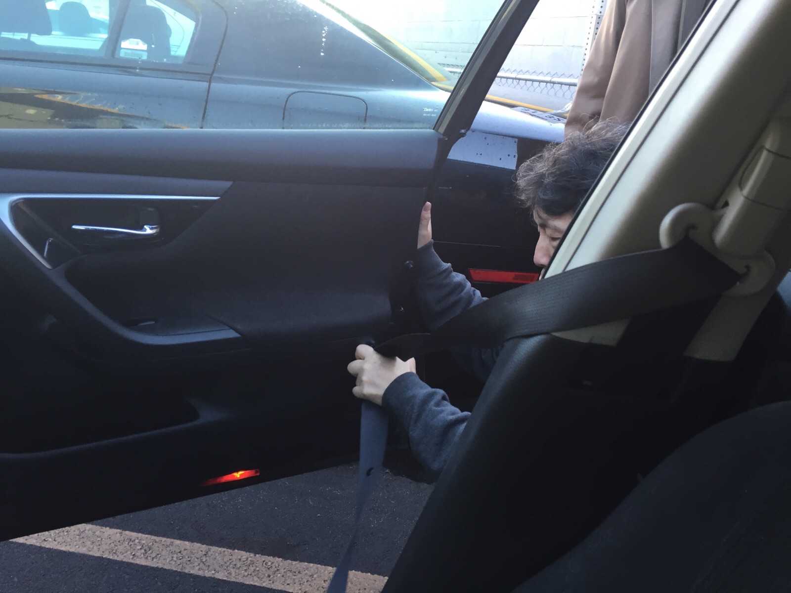 シートベルトが引っかかっているようです。