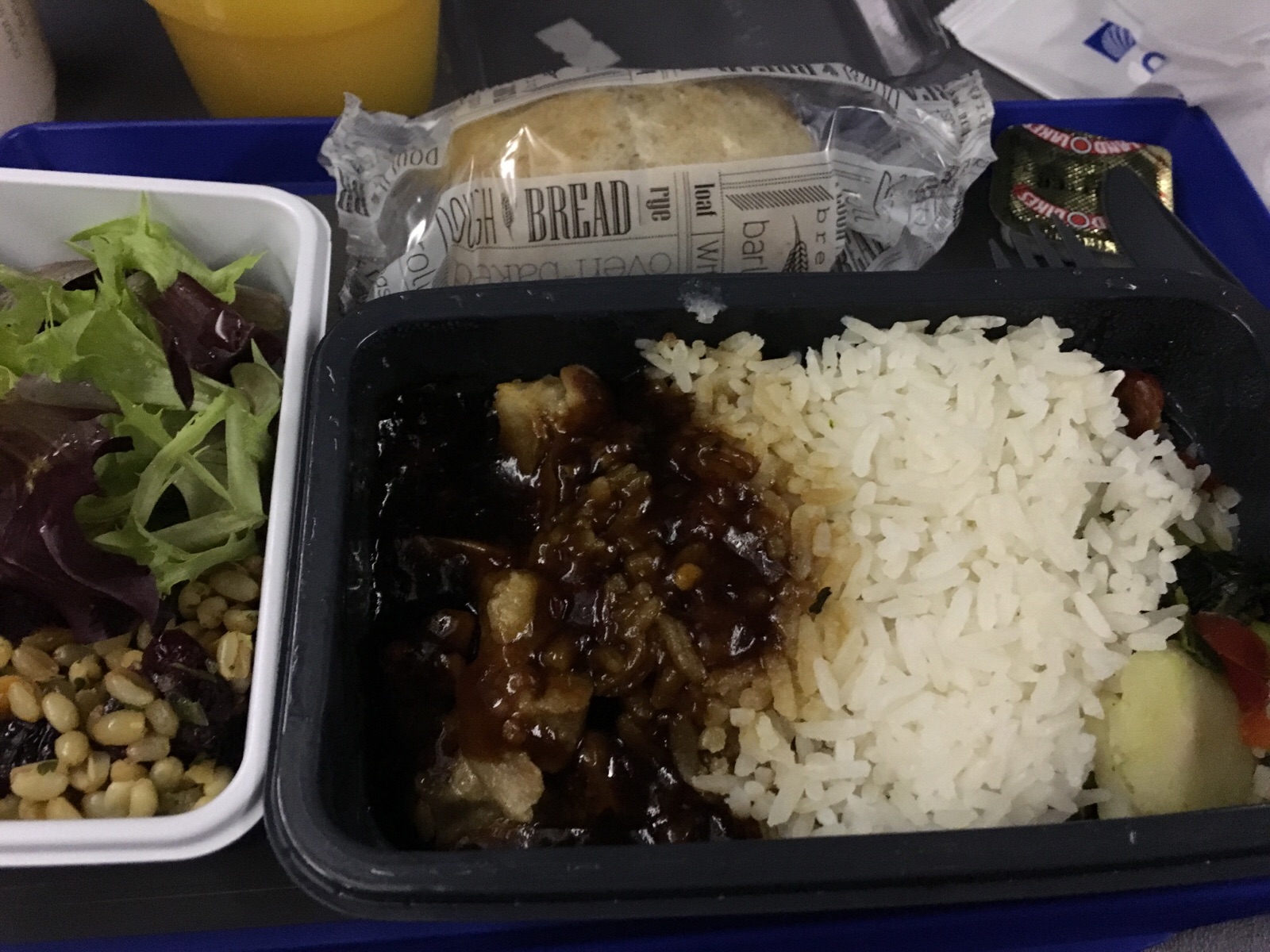 帰りの機内食はこんな感じでした! チキンかパスタを選べて、行きはパスタで帰りはチキンにしました!