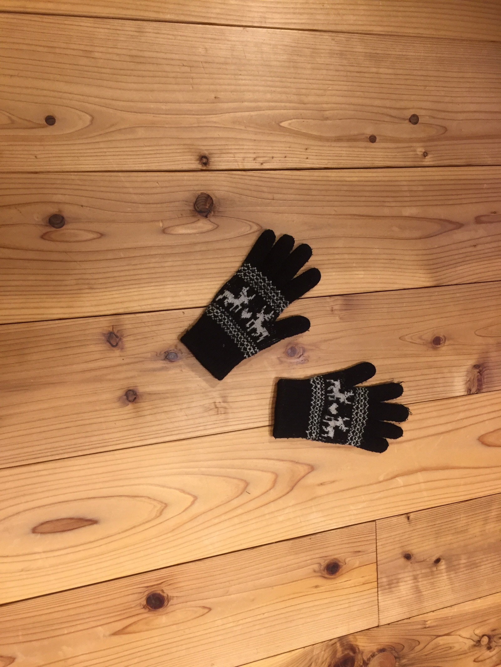 みぎわさんの落とした手袋。お祈りしながら、来た道を戻ると道路にこのように落ちていて見つけたそうです(笑)shoko