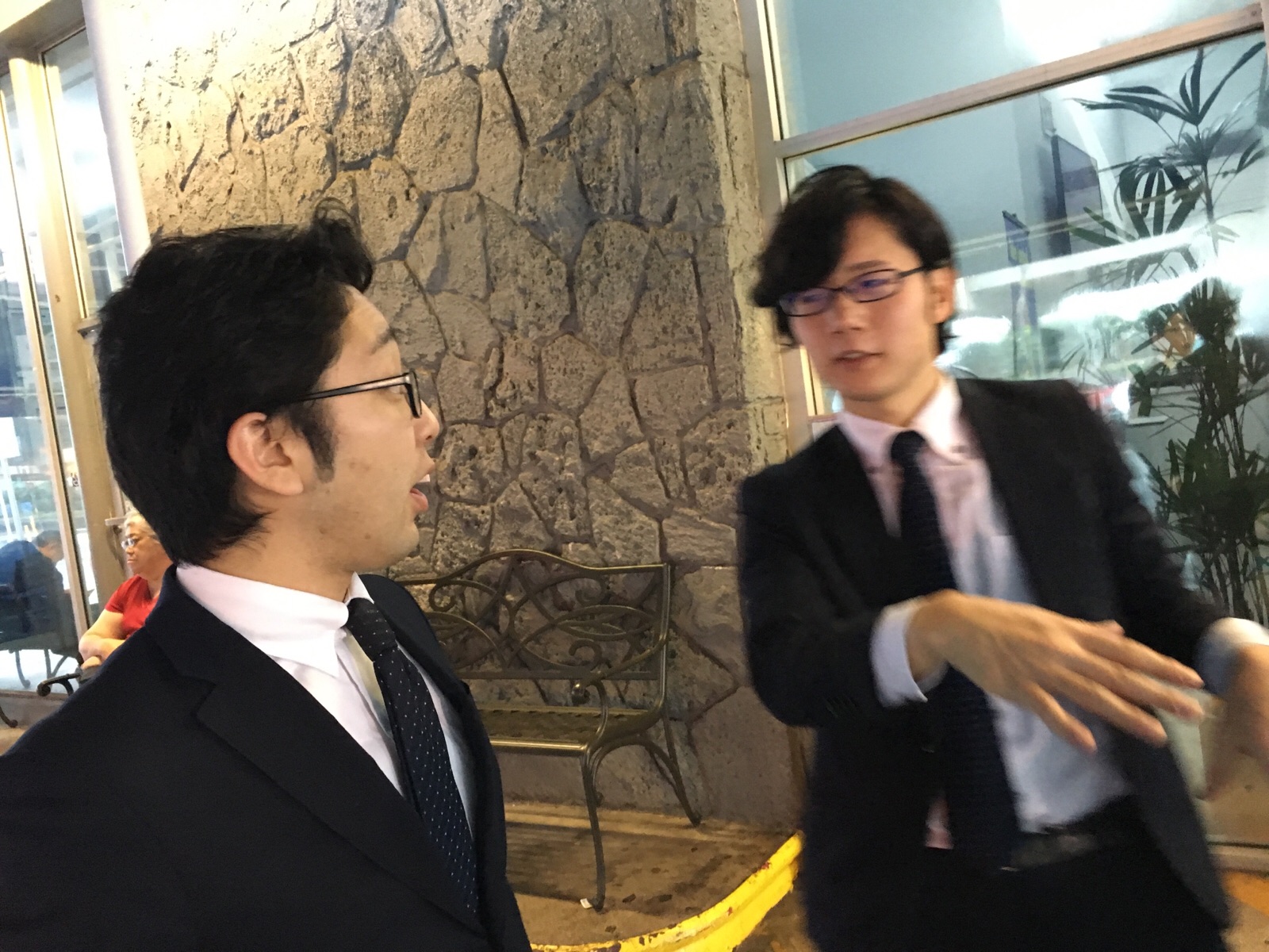 入国審査官から、何しに来たの?と聞かれ、ネクタイをしながら、サイトシーイングと答えた笠原さん。職業は、パスターと(^-^)