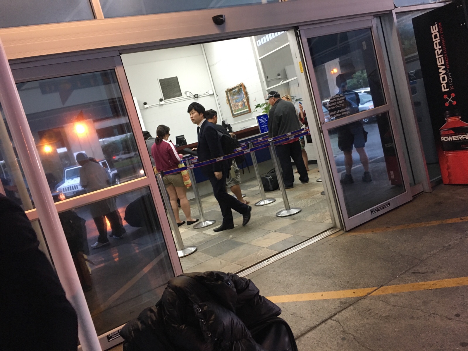 ダラーレンタカーで、順番待ち。さとpは以前、1人で夜中のイスラエルで運転したらしいです。(笑)