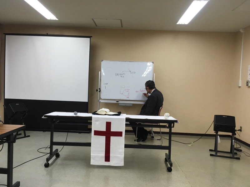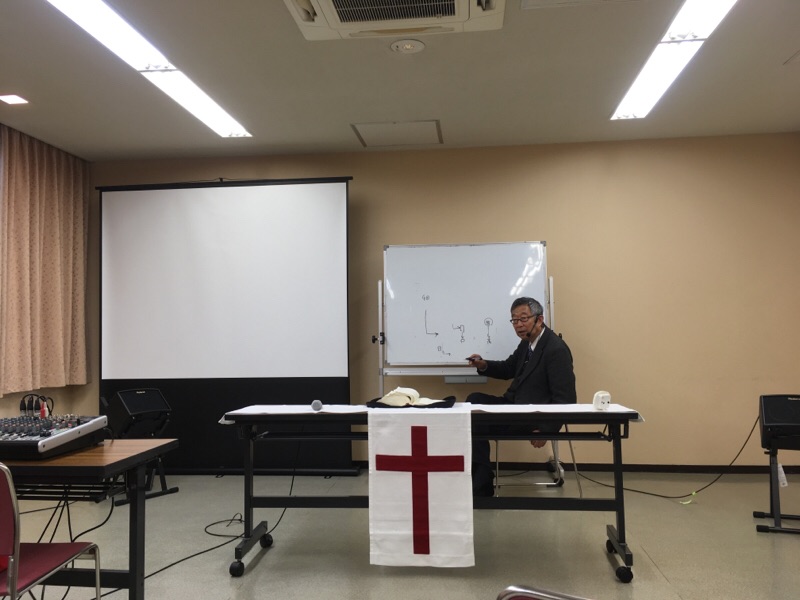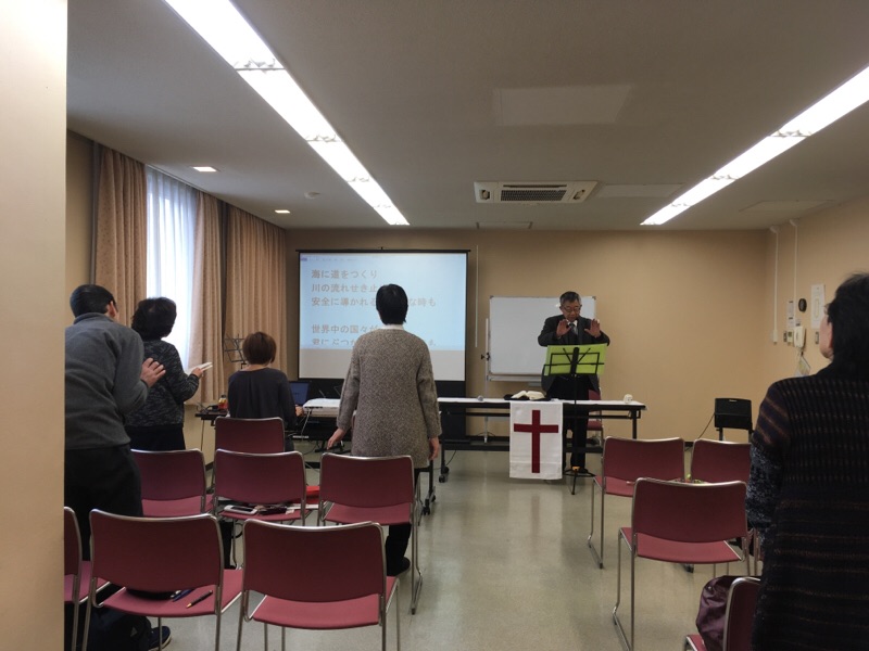 秋元さんのご奉仕です。賛美が捧げられています。 北エルサレムK