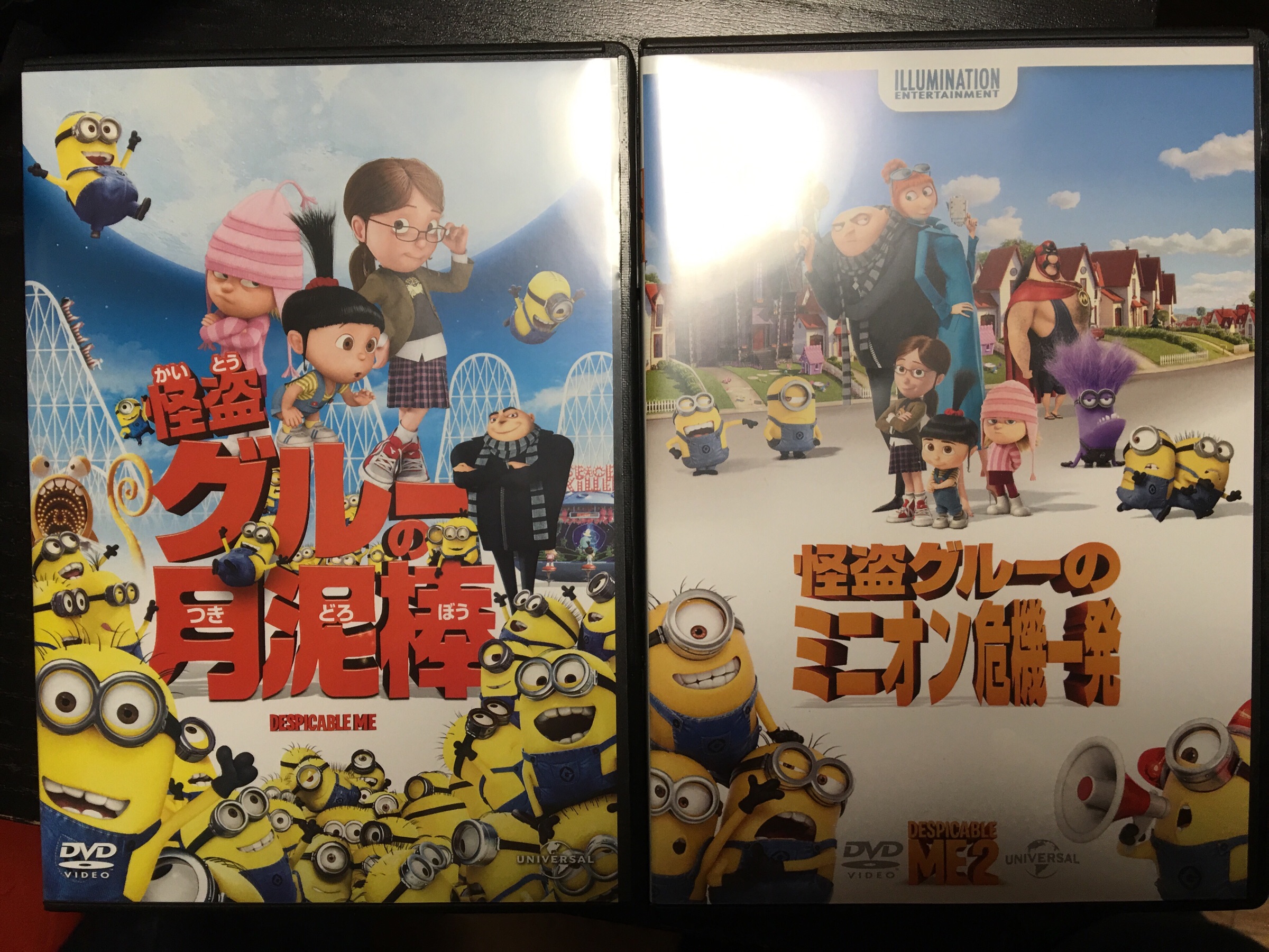 最近、本屋さんに行ったら、DVDがかなり安売りしていたので、怪盗グルーシリーズを買いました。右側の第2作目はハッピーという歌も楽しかったです。
