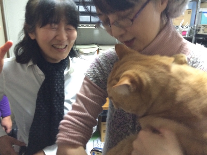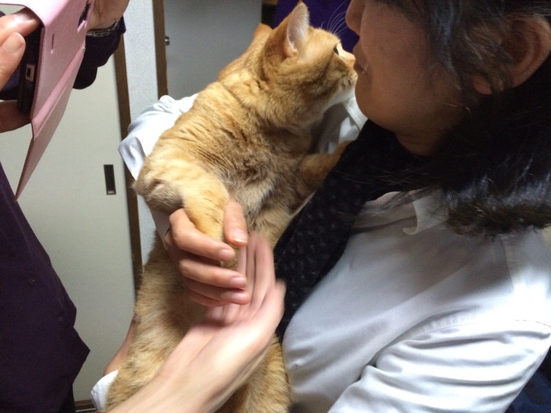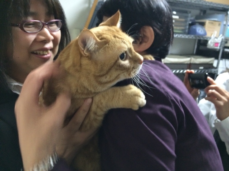抱き方が…あーでもない、こうでもないーと! 大家さん家のにゃーた君、再び登場… 大人気です〜♫ スタッフamagai