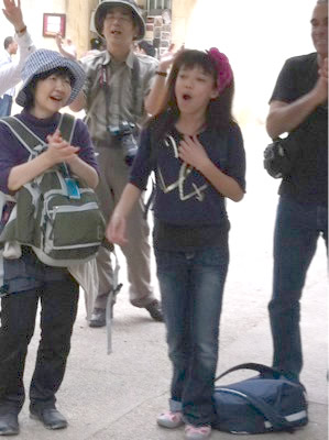 いよいよ、イエスさまが十字架をおって歩かれた「ヴィア・ドロロサ」を歩きます。「ヴィア・ドロロサ」とはラテン語で「悲しみの道」。14のステーションがあり、まずは第1ステーションから。第1ステーションは、現在、アラブ人小学校の敷地内にあります。