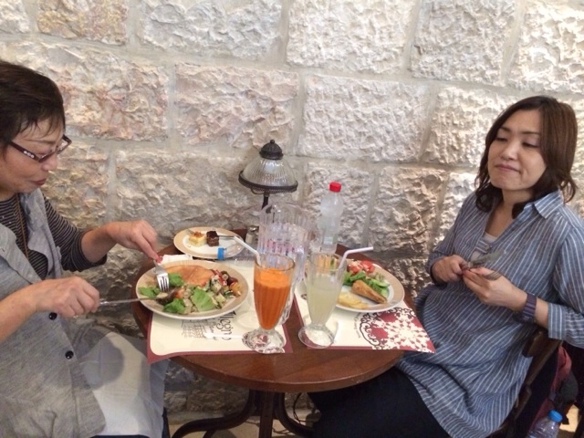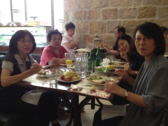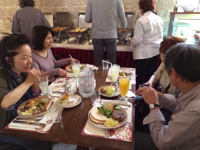 今日のツアーの副リーダーケパ中村牧師とミッションスタッフ斎藤さん、そして通訳をされた直子さん!食事中もミーティングです!