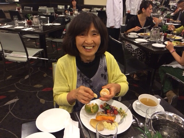 稲川牧師と土屋さん、同室コンビです。私のお勧めスイーツ試して下さるとのことです。