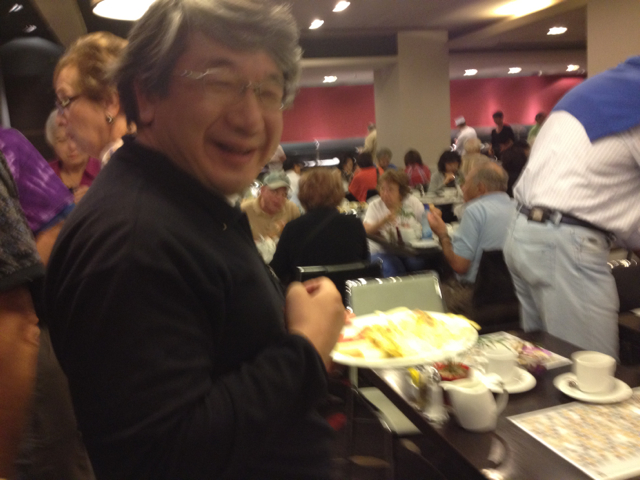 目の前で焼いてくれるオムレツが美味しく、人気です。 イザヤ牧師もご注文!