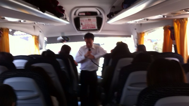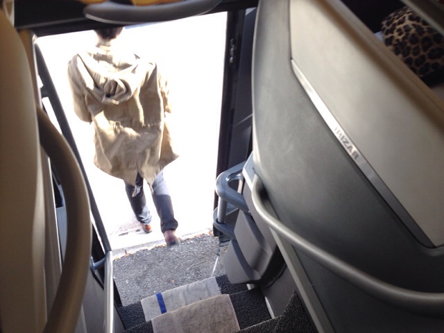 バスに荷物を運び込みます。 「知らない荷物は乗せないでくださいね〜」