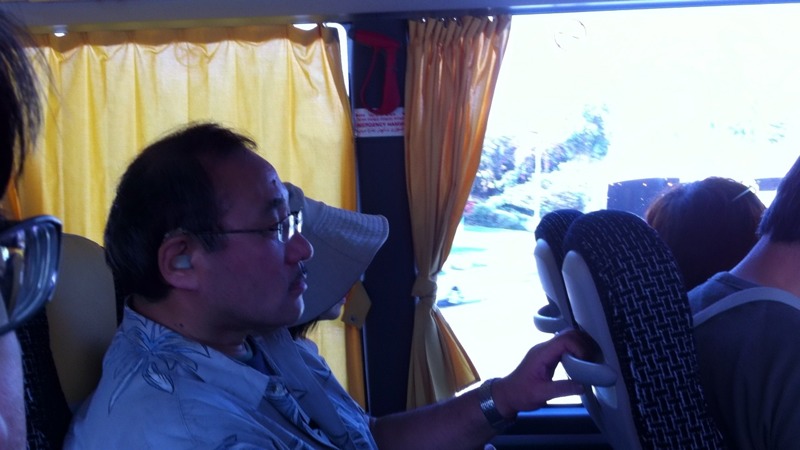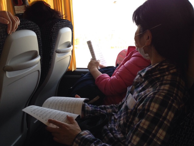 バスの中では風のひびきが流れています。皆さん熱心に練習中。