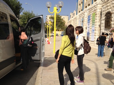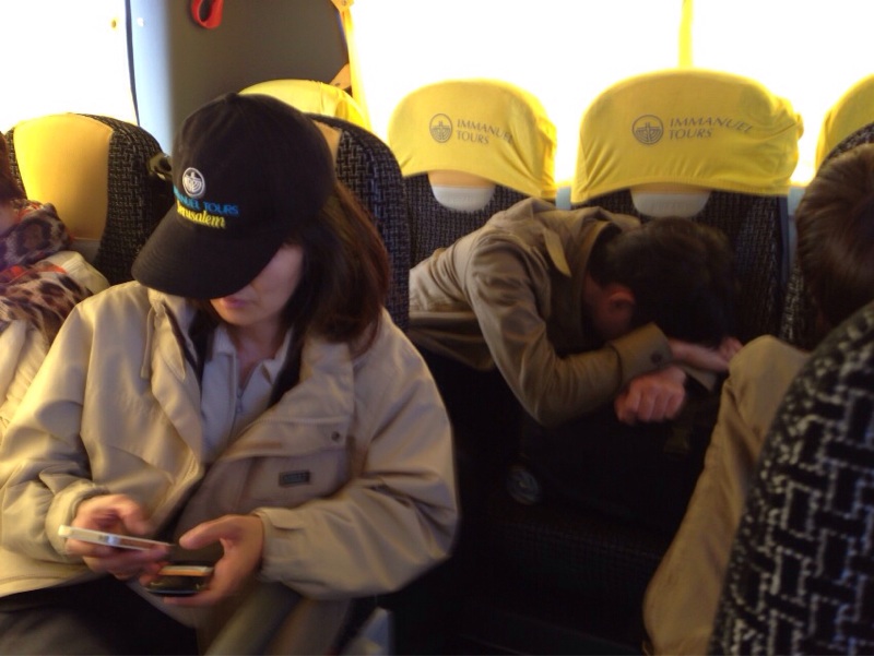 バス内は、風の響きの賛美が流れています。後ろ座席からも、歌ってる人がおられ、二重賛美構造。