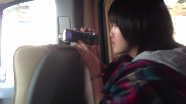 バスの中で景色を撮影中! いい映像楽しみです!