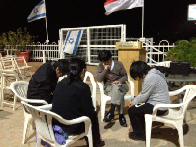 ガリラヤ湖を渡る温かな風と、波の打ち寄せる音の中もたれた祈祷会が祝福の内に終わりました。