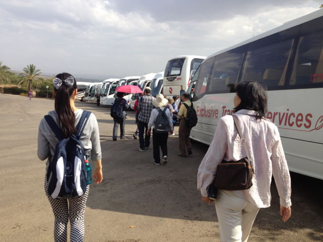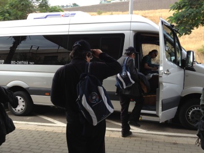 ミニバスで出発しました。ヘルモン山へ。危険から守られますように。