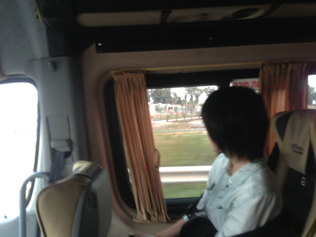バスでヘルモン山に移動中。 クネクネする道もあるので、酔いませんように。