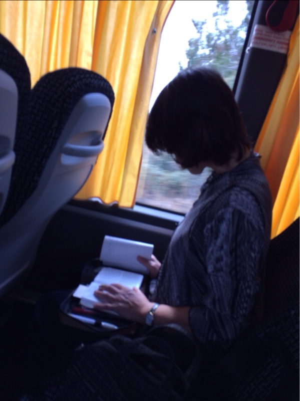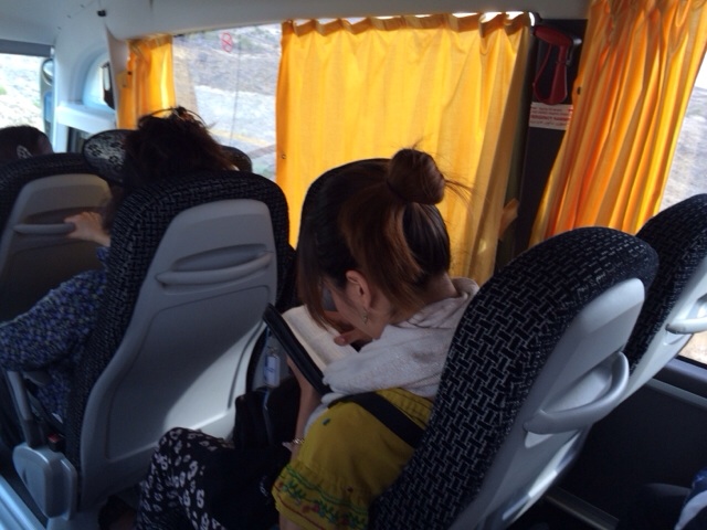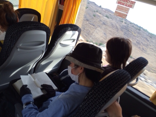 バスの移動中は聖書を読んでいます! 神様、今日も語って下さい!