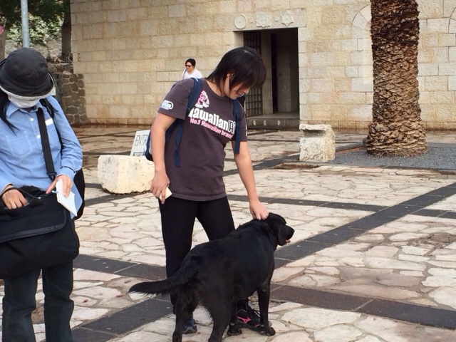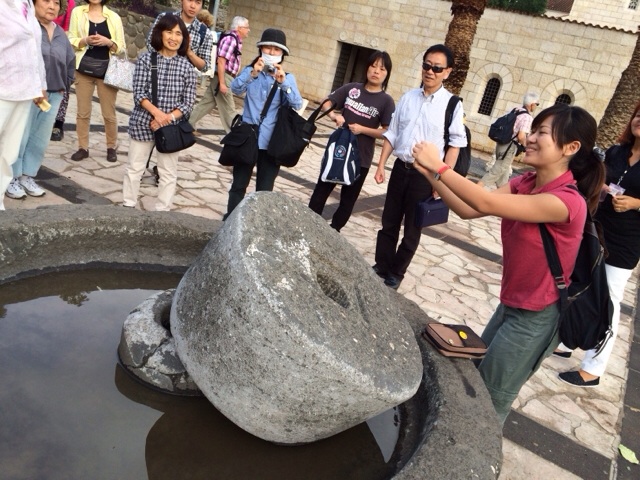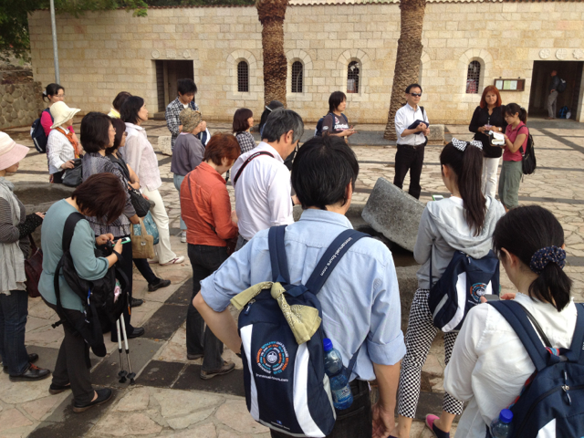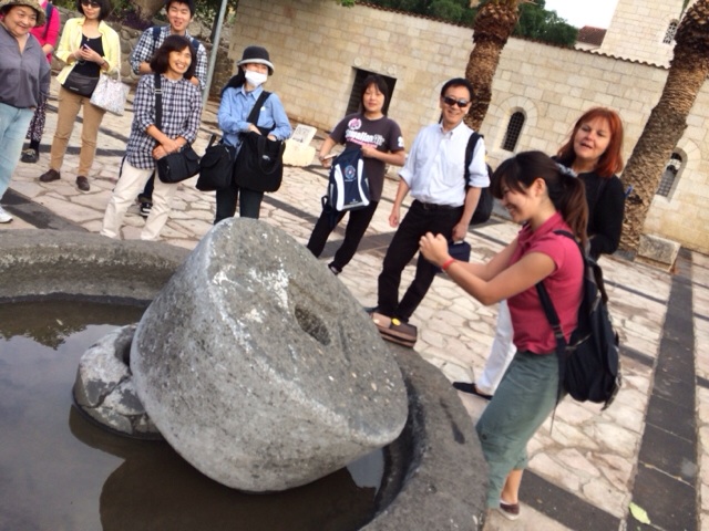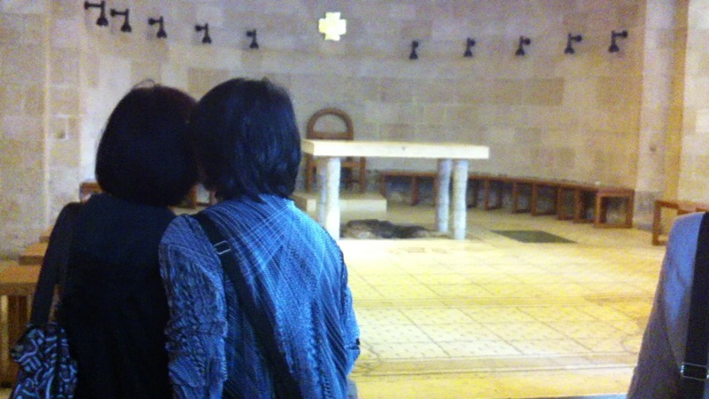 これから中に入ります。 見学の前に聖書を開きます。 5千人の給食の箇所です。