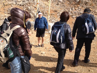 ヘルモン山 この寒いのに~‼おじさまのひざ下は素足ですか~
