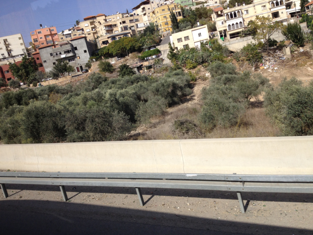 ナザレに向かっています。 道の両側にオリーブ畑が広がっています。
