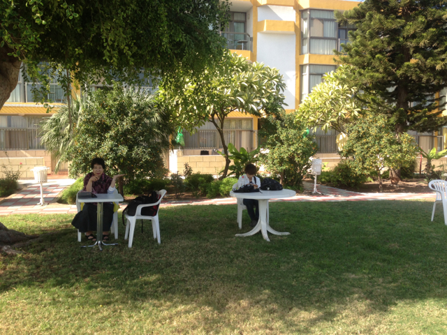 ふと後ろを振り向くと、皆さん日陰で祈っていました!