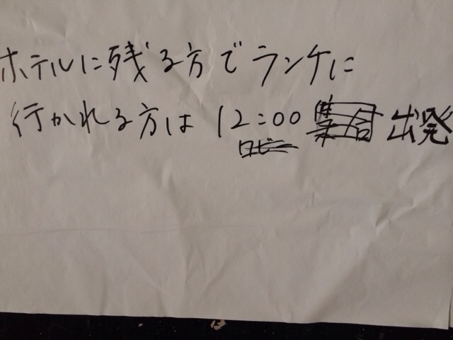 ホテル組でランチを食べに行かれる方は 12:00に出発です!
