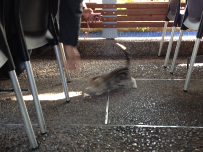 次はお肉をポイっと。しかし、猫ちゃんは一瞬ボー(ーー;)
