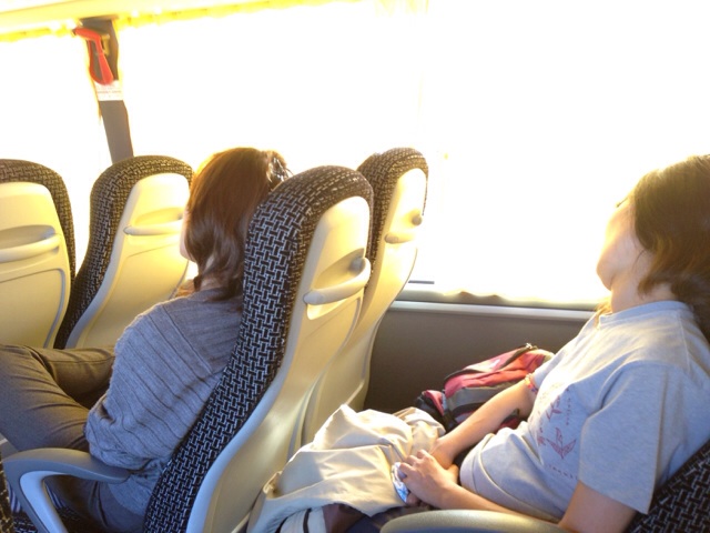 タクシーは無事に駐車場へ降り、バスへ乗り換えます。