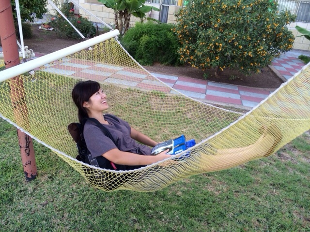 ロビーにて。頌子ちゃんもイスラエルライフを満喫中(^_−)−☆