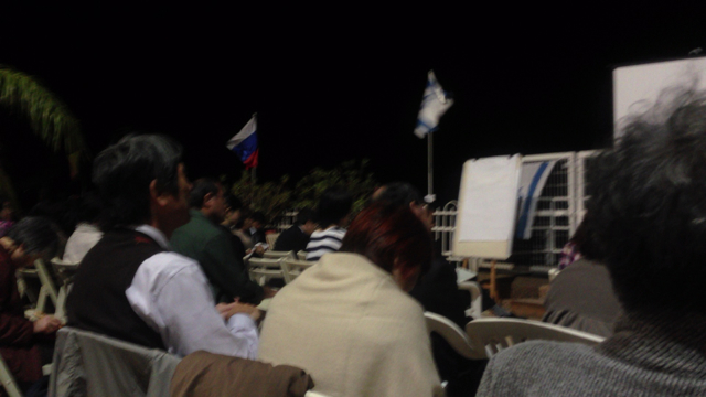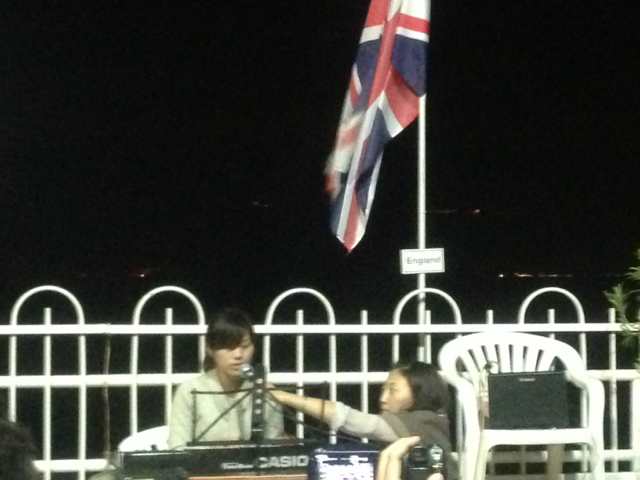 特別賛美は、ショウコちゃん。 風のひびきの53番から賛美! 風で旗が舞う中、賛美(^O^)