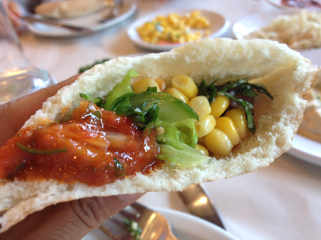 うまくサンドできるかな〜⁉︎ すこし辛いチリソースが美味しい!