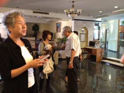 榊牧師がホテルで、あっちこっち探してました。みなロビーにいて、「あったんですね~!よかったですね~!」