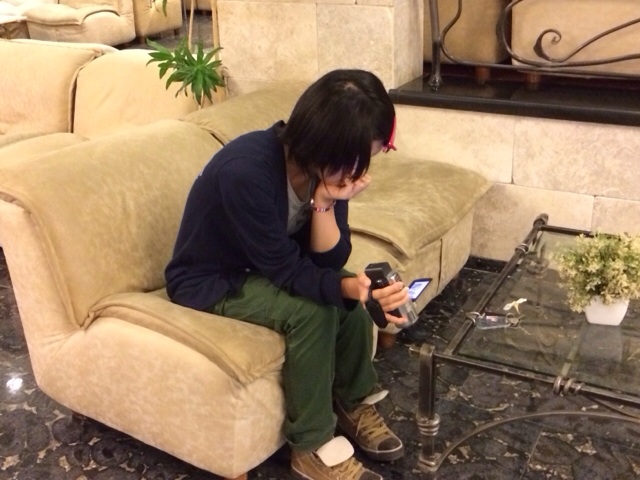 京子ちゃん、ロビーで映像の確認中!!
