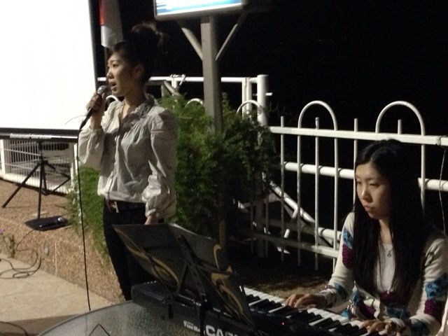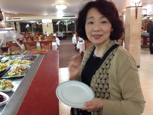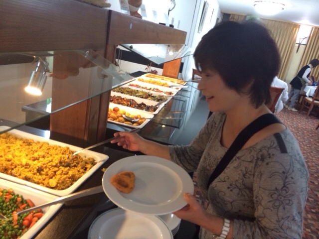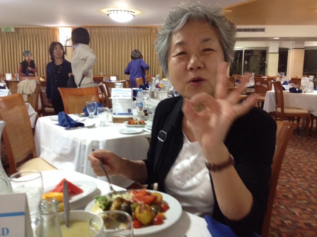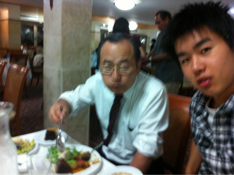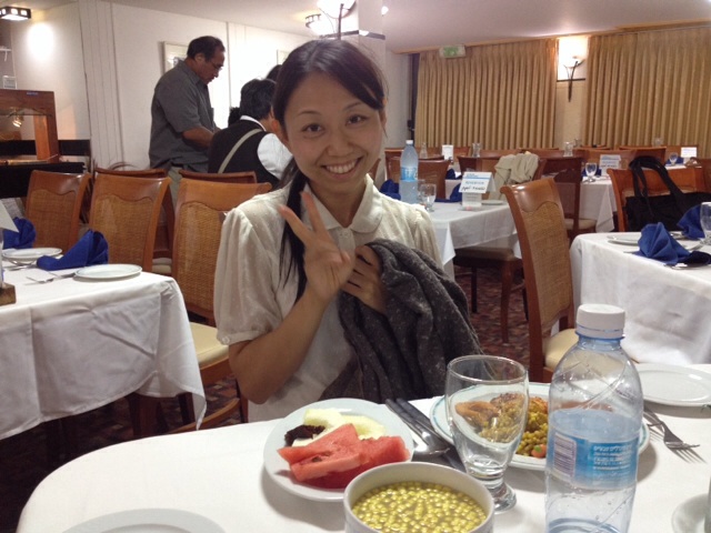 パウロ牧師ご夫妻、お食事中。 そこにミッションスタッフが来て確認。