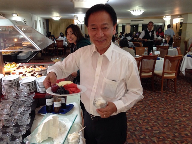 アイスクリームを取りに来られた弓野牧師を撮らせていただこうと思ったら、逆にフルーツ持って行かれそうになりました〜ヽ(;▽;)ノ