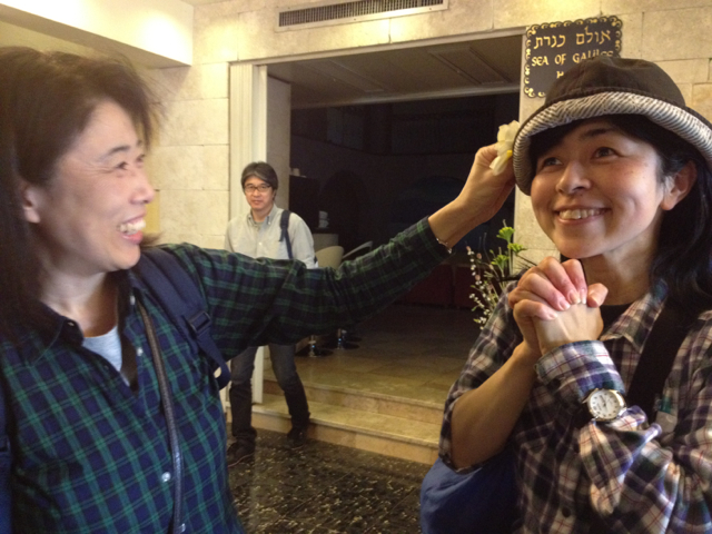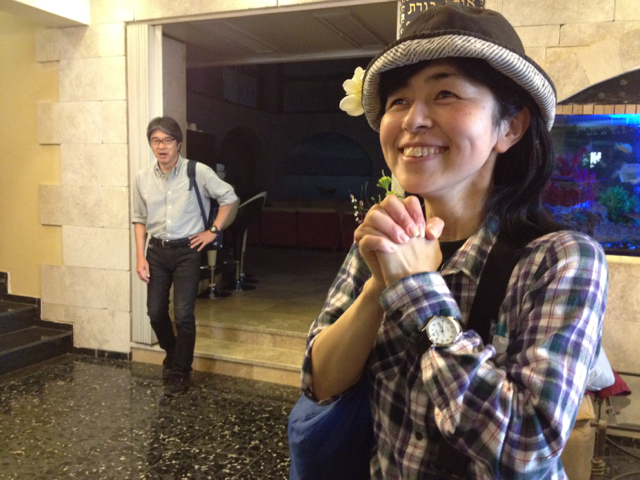 ロビーで。右側の方は杉澤さん。イスラエルは2回目だそうです。「うちの奥さんは3回も来てるの~!」来年またこれば同点よ!あ、でも奥さんも来られるかな?