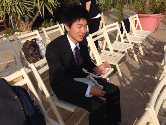ヘルモン山の方に向かっています。聖書を熱心に読んでいるエルサレム前田牧師。